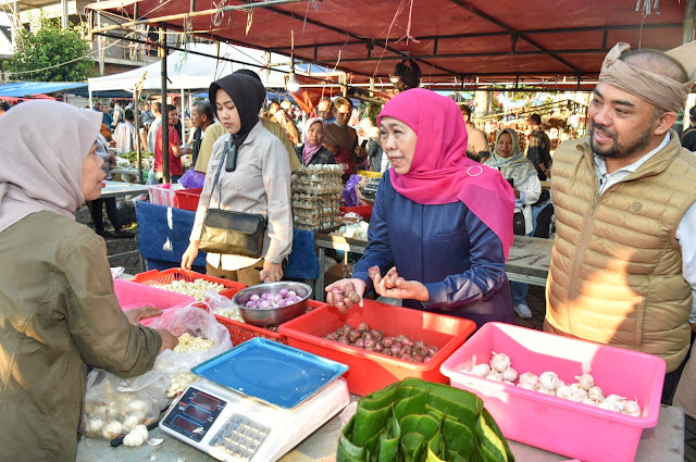 Kabar Nusantara - Memasuki hari kedua puasa Ramadan, Gubernur Jawa Timur Khofifah Indar Parawansa mengecek sejumlah harga Bahan Pokok (Bapok) di Pasar Among Tani Kota Batu, Minggu (2/3).